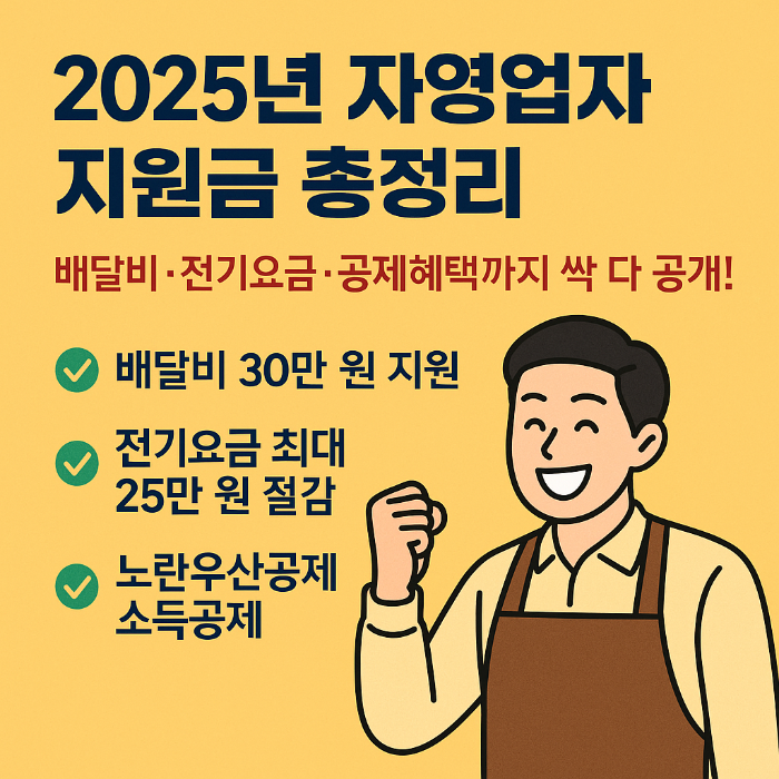 자영업자라면 꼭 챙겨야 할 지원금들이 있습니다. 특히 2025년부터는 전기요금, 배달비, 노란우산공제까지 지원 폭이 확대되었는데요.